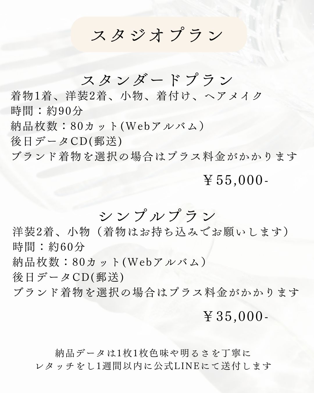 当店の七五三は着物を持ち込みでもOKですし、当スタジオの着物からコーディネイト~ヘアメイクトータルでもご案内出来ます。