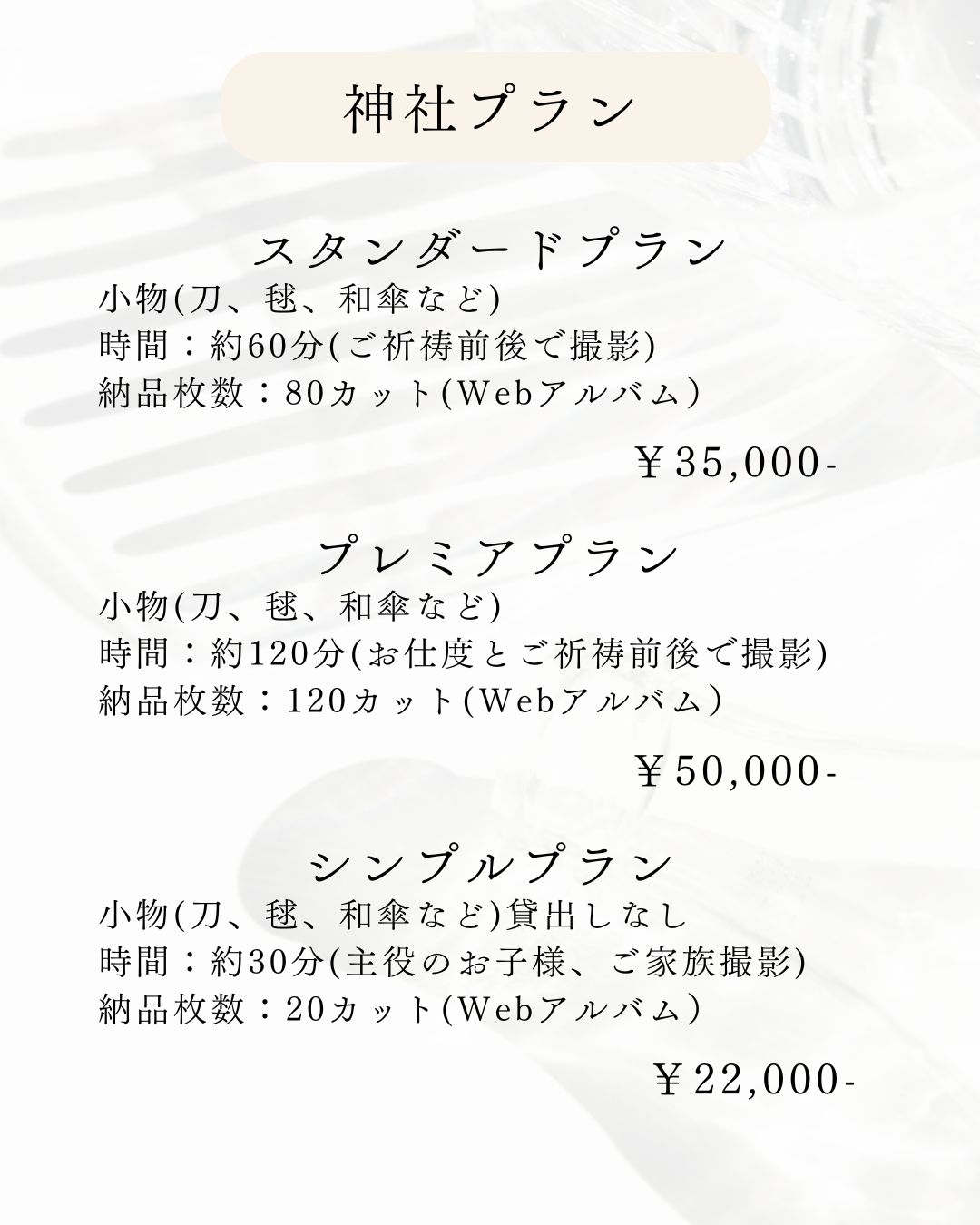 神社で撮影やお仕度からご祈祷まで撮影したり、スタジオで可愛く撮影することができます。